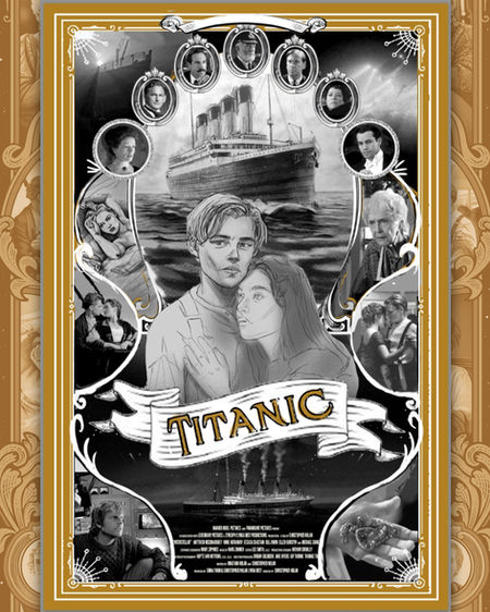 I take movie screenshots, collect promo photos, stills, and any other resources that could possibly inspire my poster or help fill in gaps in my references. I organize everything into folders by subject, and then create a board with all the images I am drawing from.